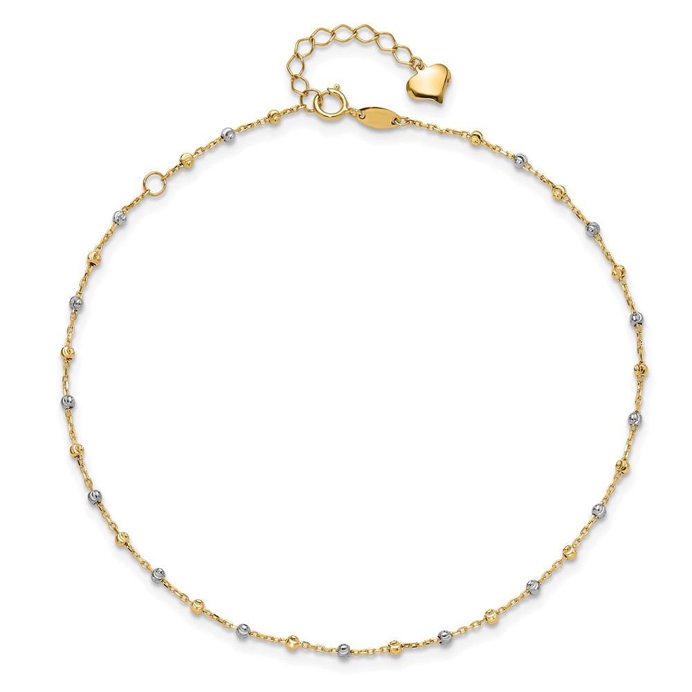 14K Two-tone Diamond-cut Bead Plus Extender – Total Anklet