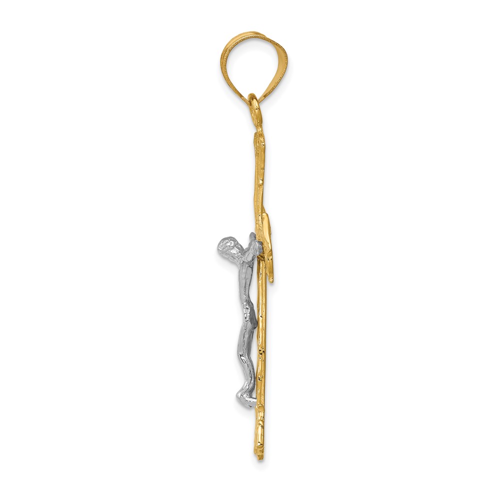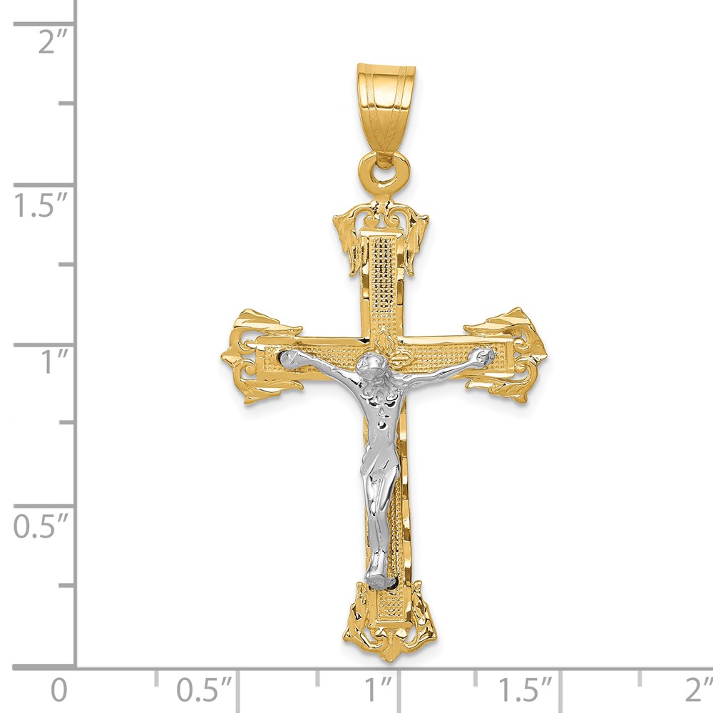 14k Two-tone Large Diamond-cut Crucifix Pendant