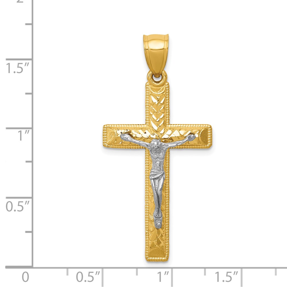 14k Two-tone Diamond Cut Crucifix Pendant