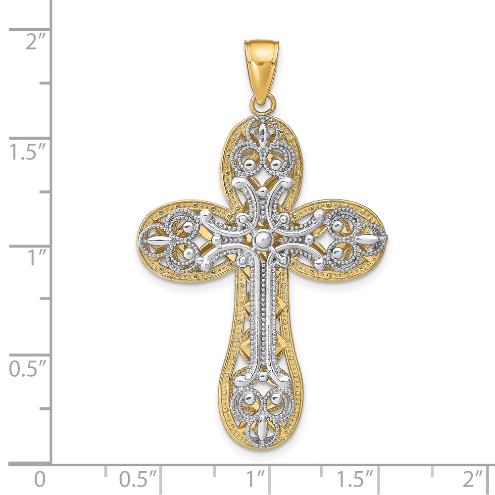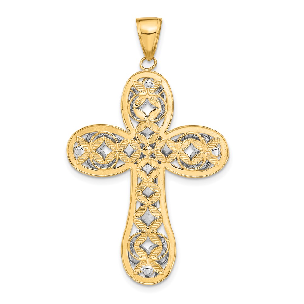 14K Two-tone Diamond-cut Layered Cross Pendant