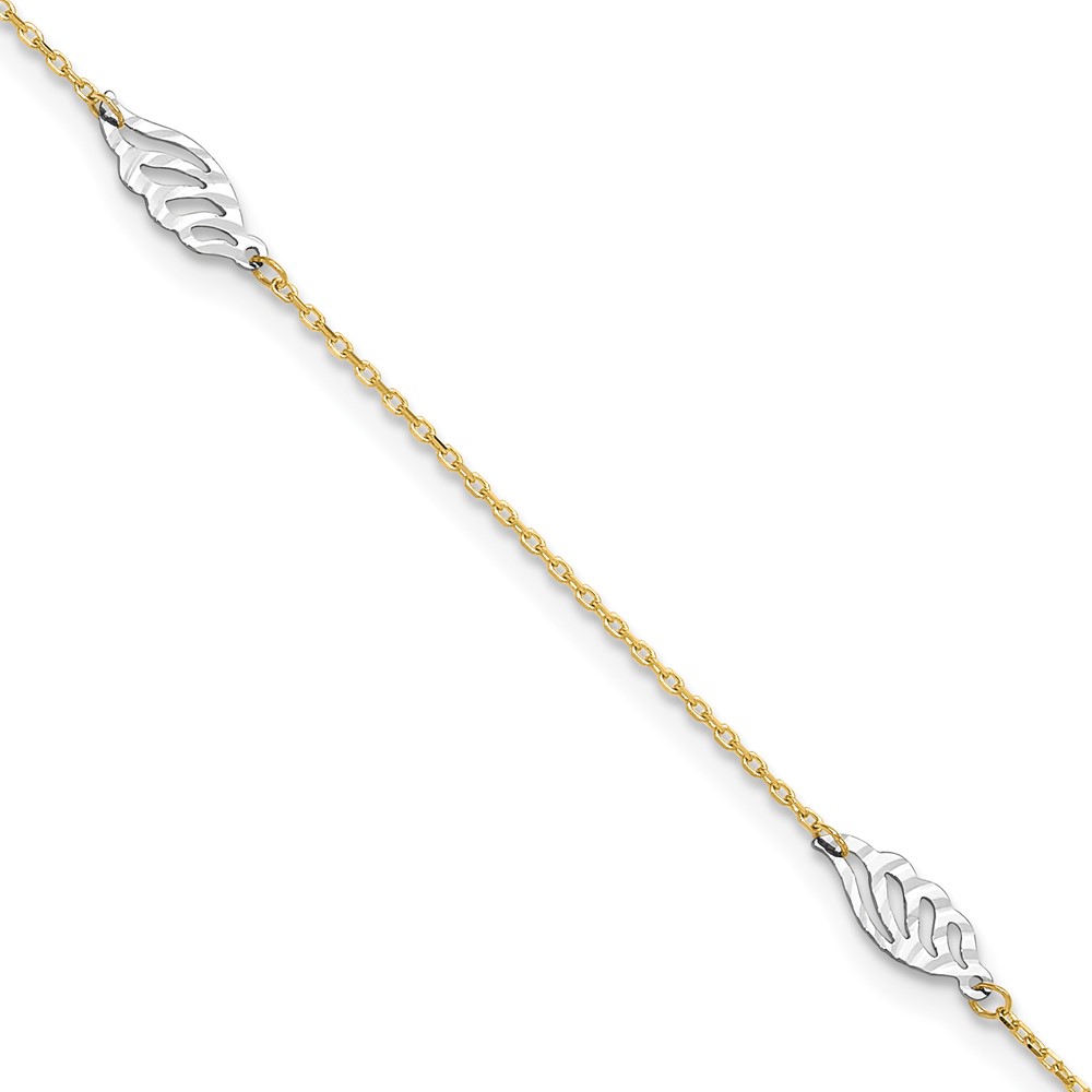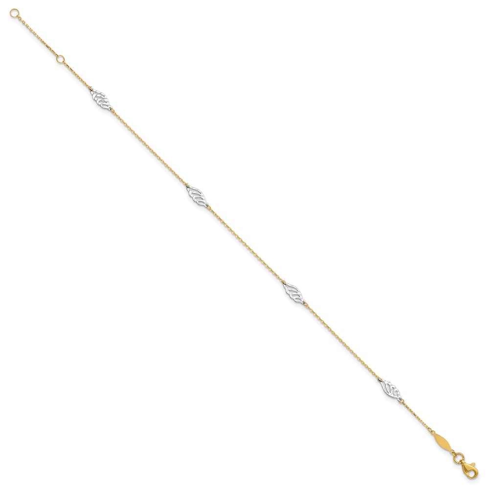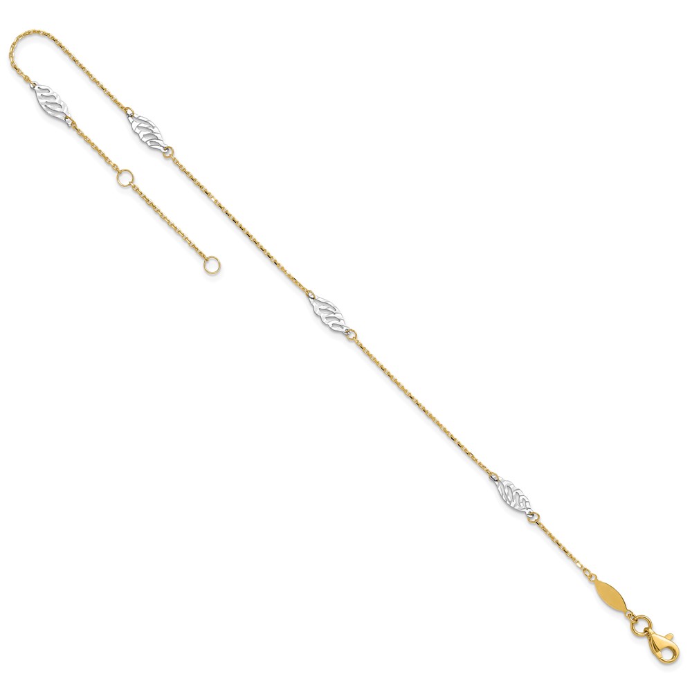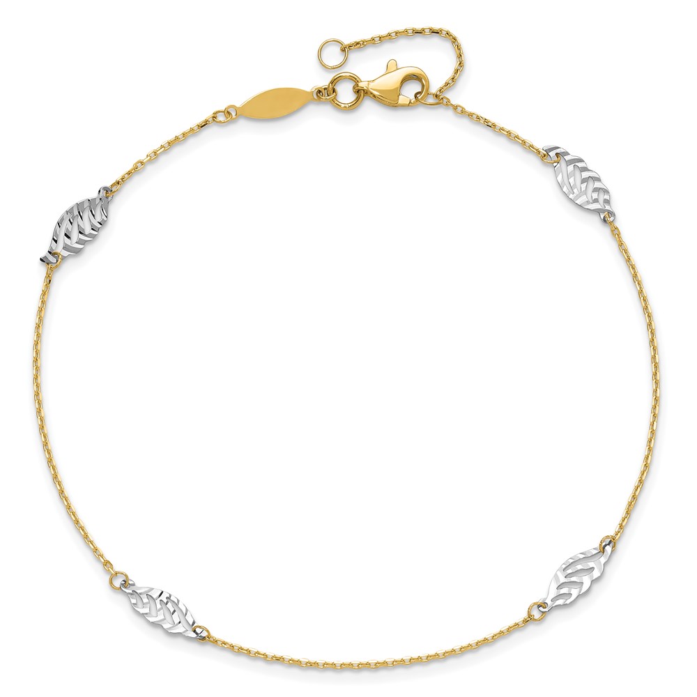 14K Two-Tone Diamond-cut Leaf 4-Station Plus Extender – Total Anklet