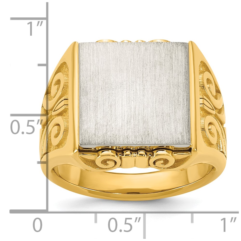 14k Two-Tone Engravable Square with Rounded Corners Signet ring