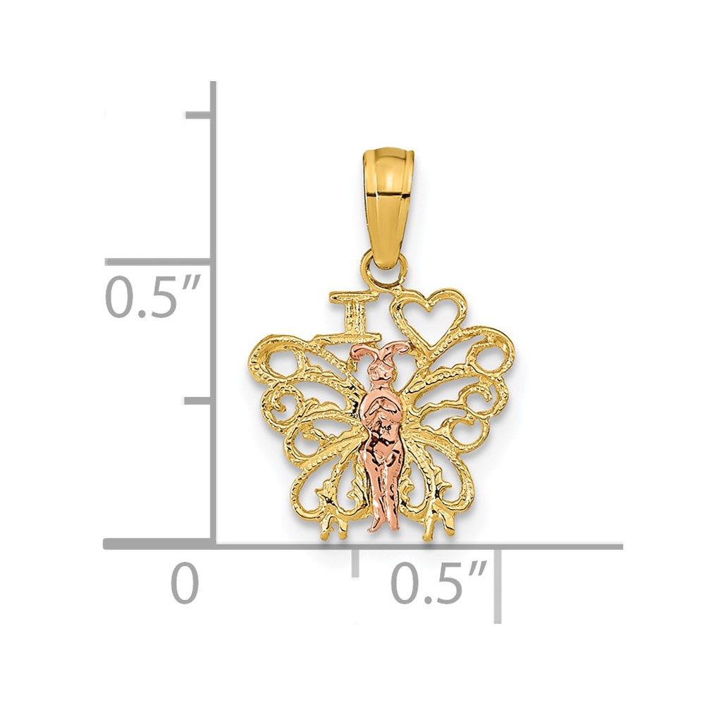 14K Two-tone I HEART Butterfly Pendant