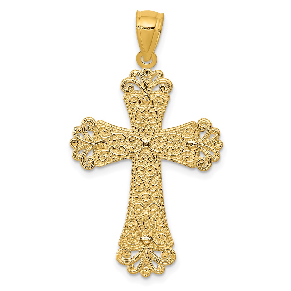 14k White Gold 1/10 carat Diamond Filigree Budded Cross Pendant