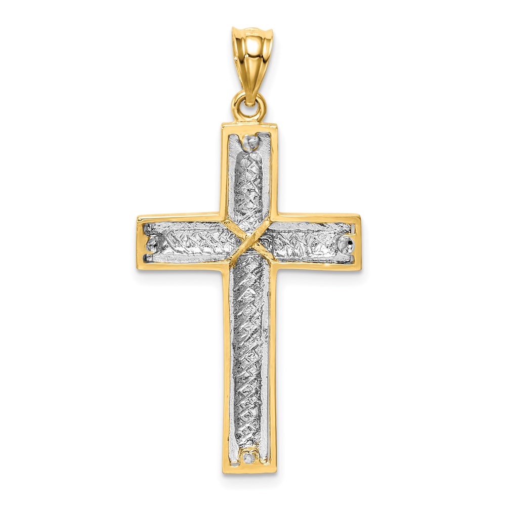 14K Two-tone Polished and Diamond-cut Cross Pendant