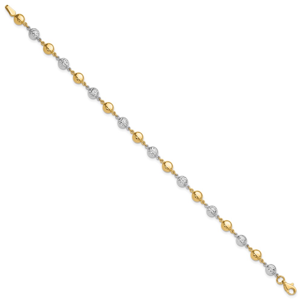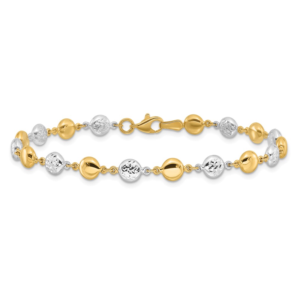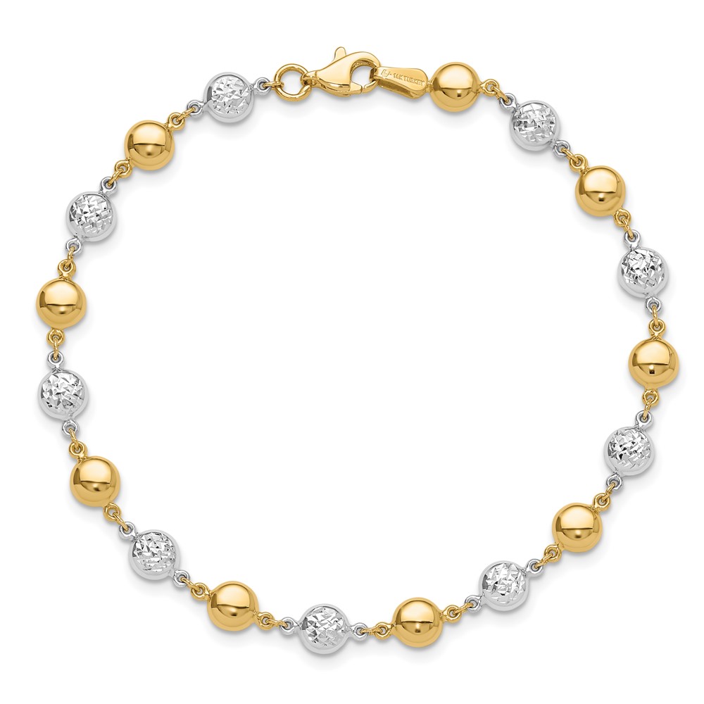 14K Two-tone Diamond-cut Beaded 7.5 inch Bracelet