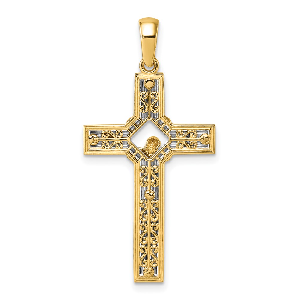 14k Two-tone Polished and Satin Crucifix With Square Cut Out Pendant