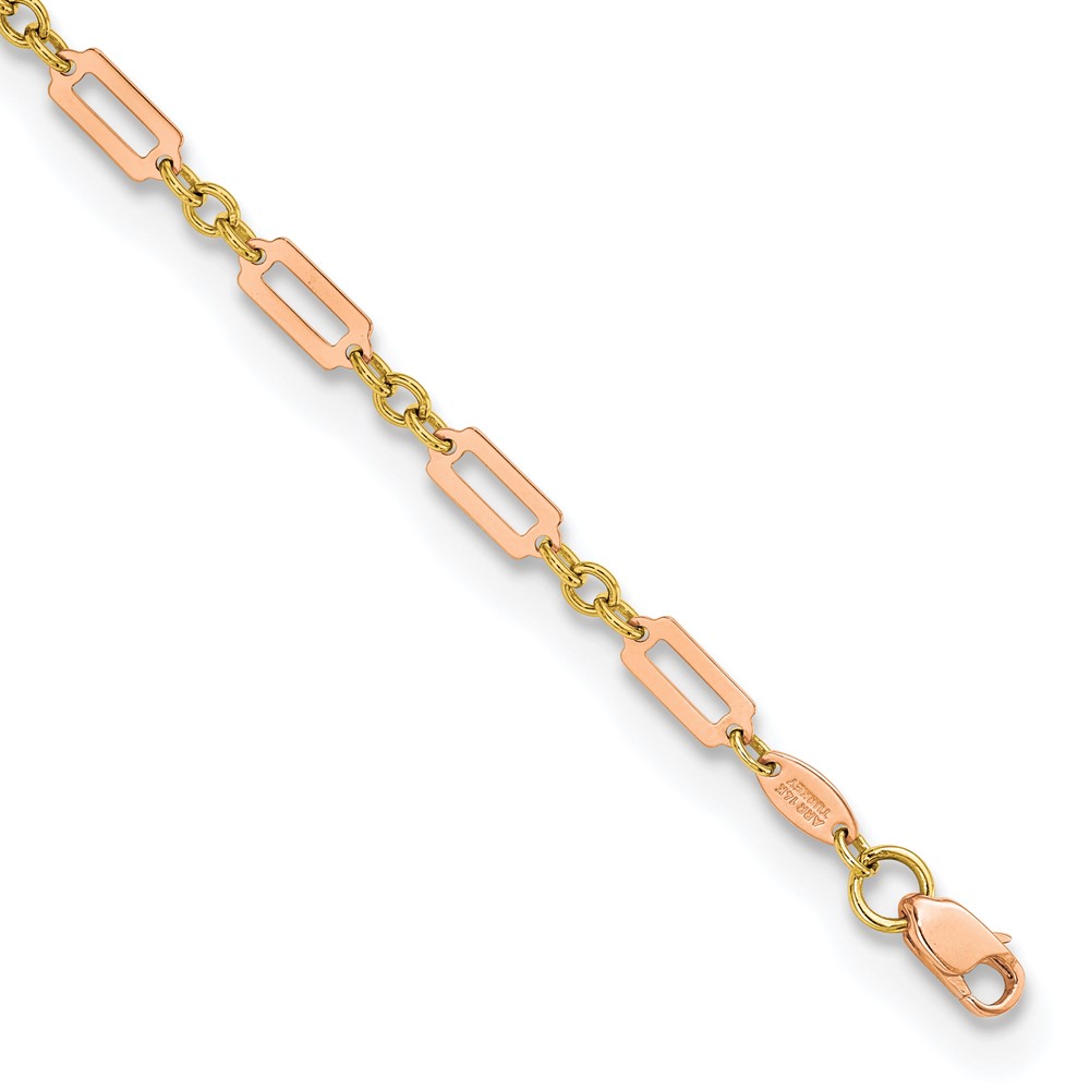 14k Two-tone Polished Fancy Rectangle Link 7.5 inch Bracelet