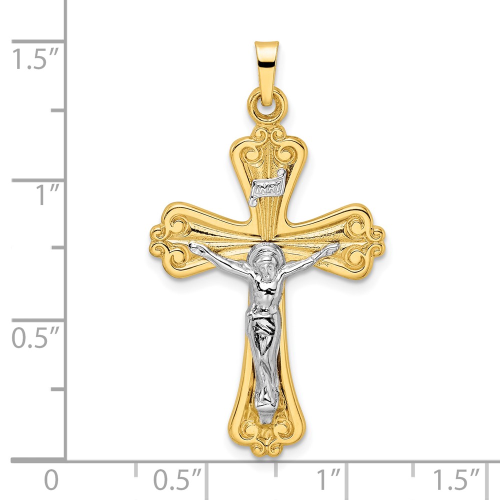 14k Two-tone Polished Solid INRI Crucifix Cross Pendant