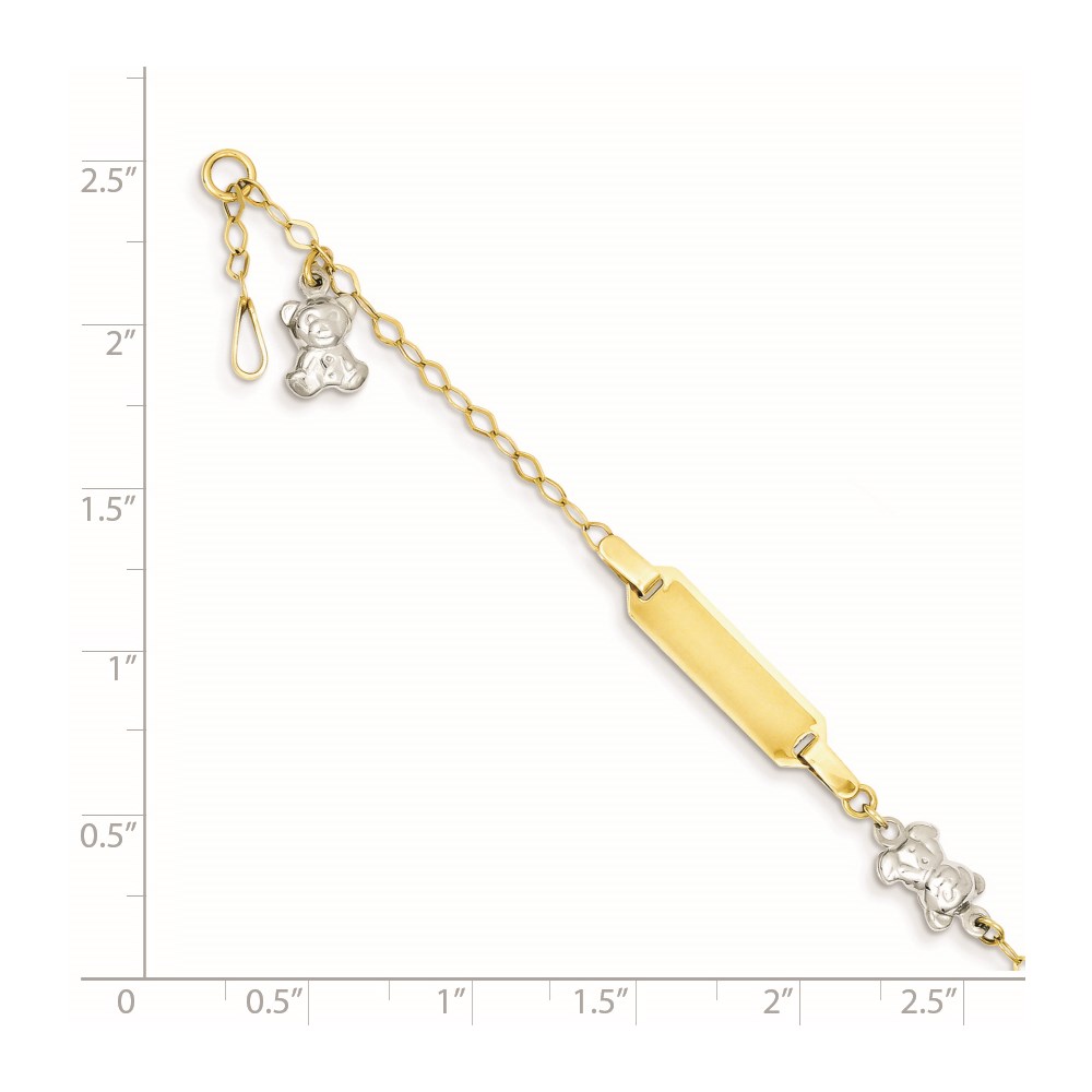 14k Two-tone Polished Teddy Bears and 18x5mm Plate 5.5 inch Baby/Child ID Bracelet with 0.5 inch Extender