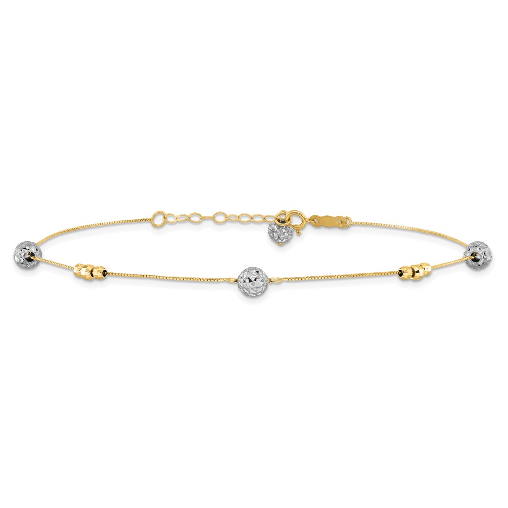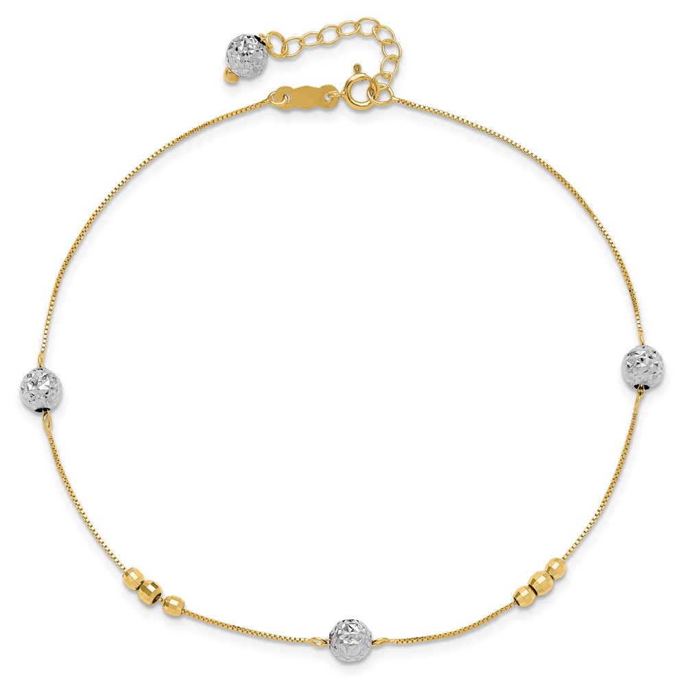 14k Two-tone Textured and Mirror Beads 5-Station Plus Bead Dangle Extender – Total Anklet