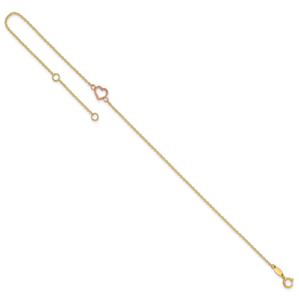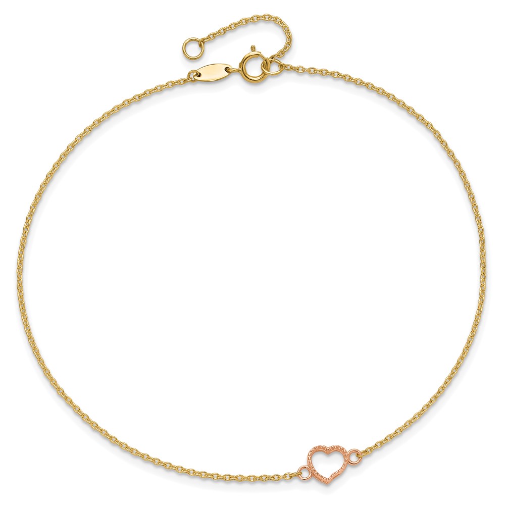 14k Two-tone Textured and Polished Open Heart Plus Extender – Total Anklet