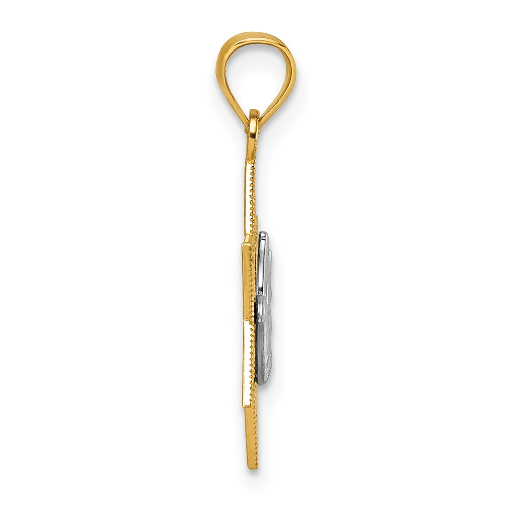 14k Two-tone Textured Dove On Star Of David Pendant