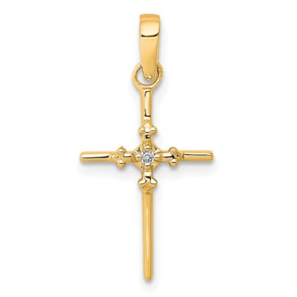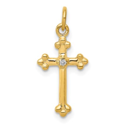 14k White Gold Polished 1/10 carat Diamond Budded Cross Chain Slide