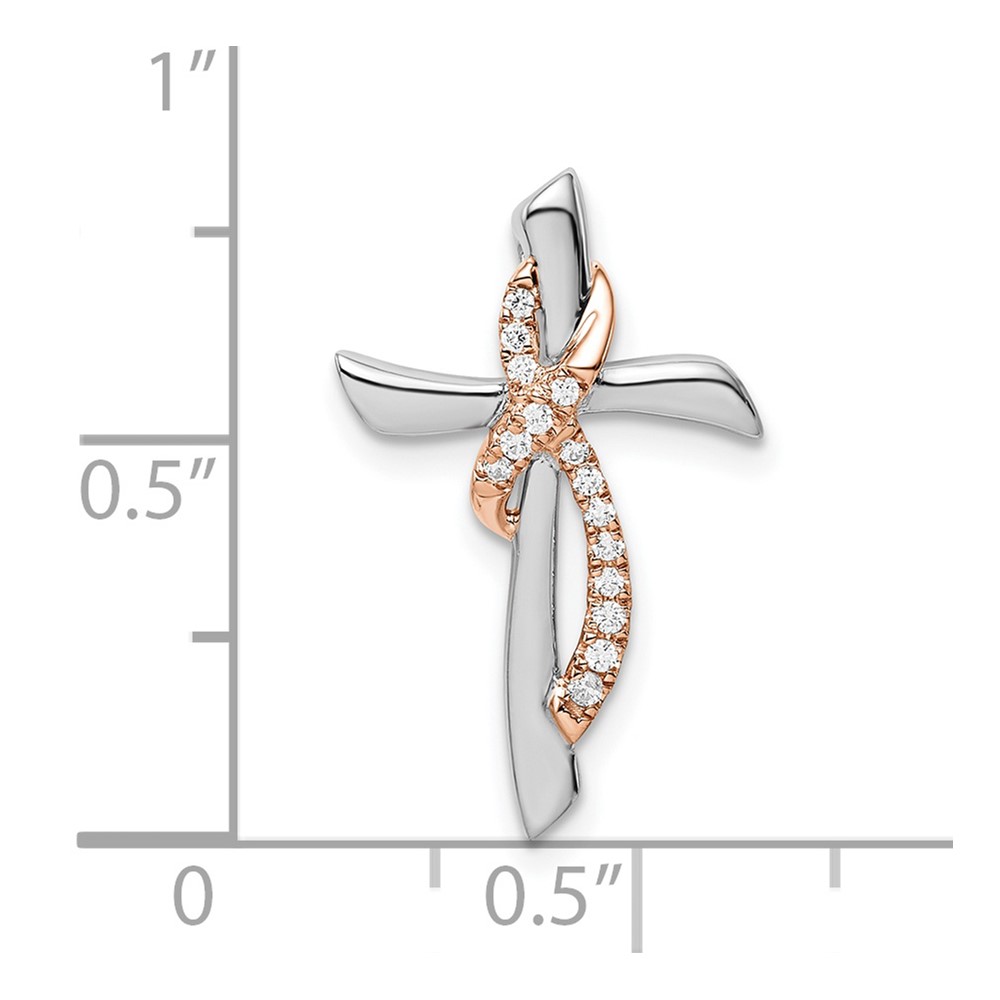 14k Two-tone White and Rose Gold 1/15 carat Diamond Cross with Ribbon Chain Slide