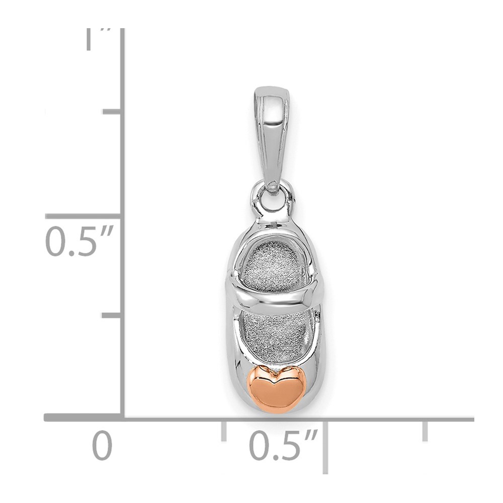 14k Two-tone White and Rose Gold Baby Shoe with Heart Charm
