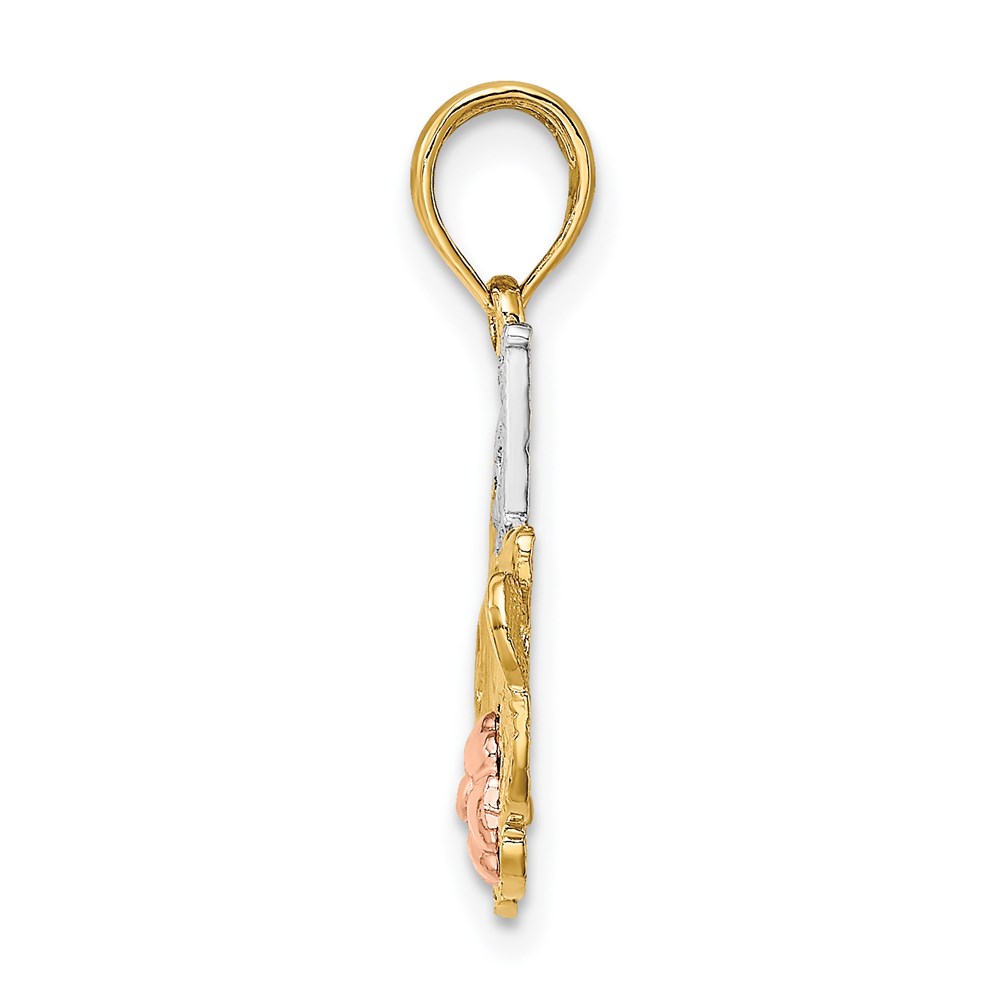 14k Two-tone with White Rhodium #1 MOM with Flower Charm