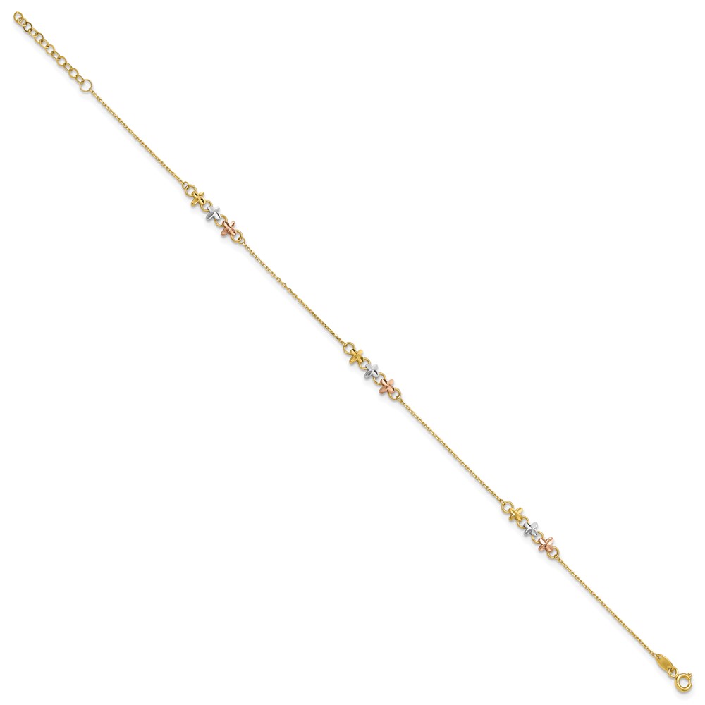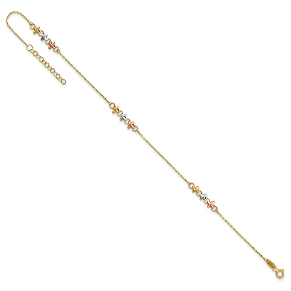 14K Two-tone with White Rhodium 3-Station Flowers Plus Extender – Total Anklet