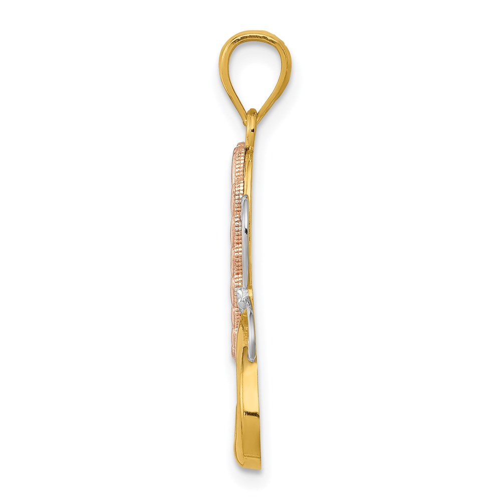 14k Rose Gold and White Rhodium Diamond-cut Butterfly Pendant