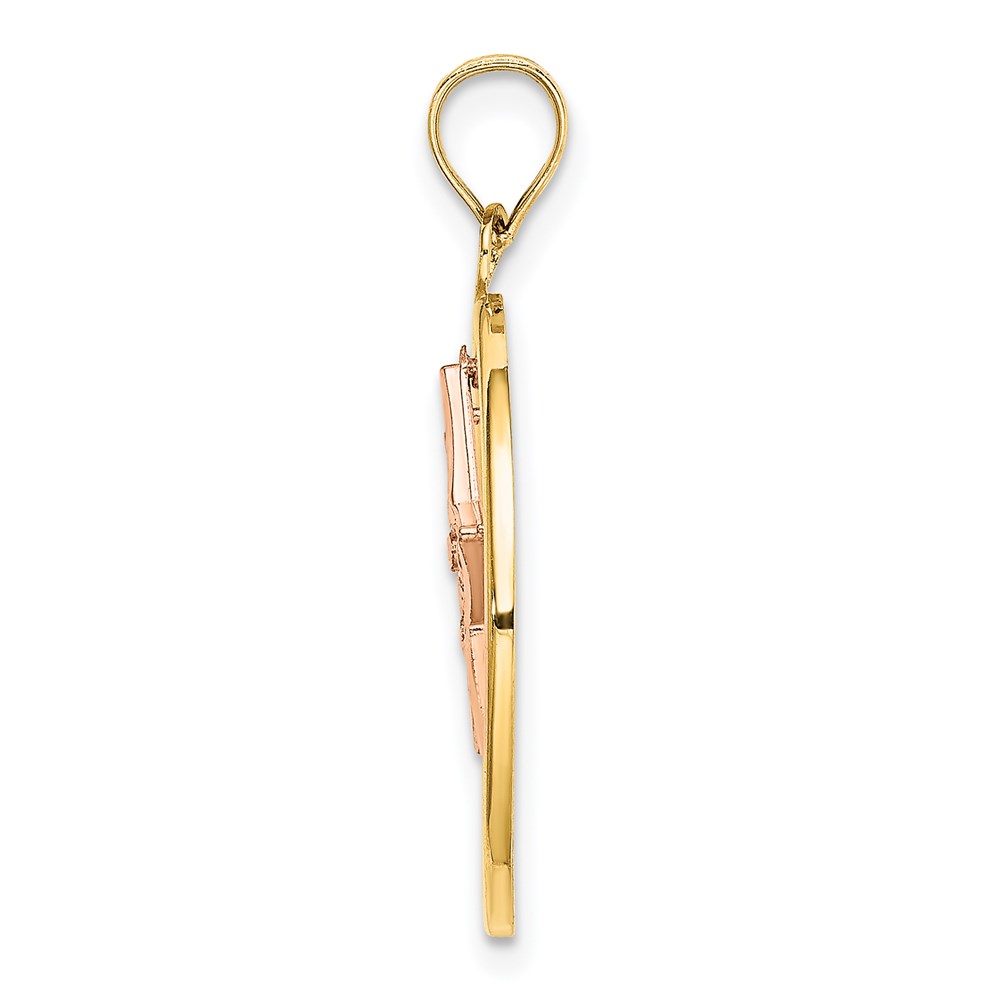 14k Two-tone with White Rhodium Star with Flowers Pendant