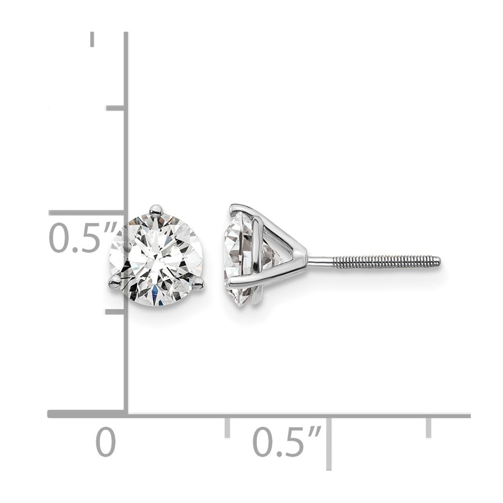 14k White Gold 1 1/2 carat Certified Lab Grown Diamond VS/SI+ G+ Round Complete Three Prong Screwback Stud Earrings