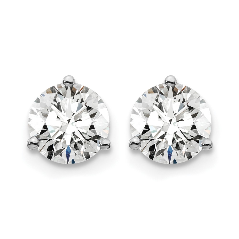 14k White Gold 1 1/2 carat Lab Grown Diamond VS+ F+ Round Complete Three Prong Screwback Stud Earrings