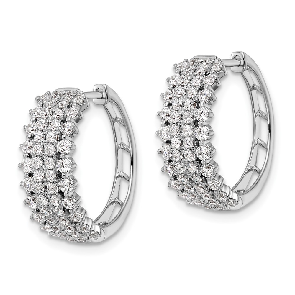 14k White Gold 2-row Baguette Diamond Omega Back Hoop Earrings