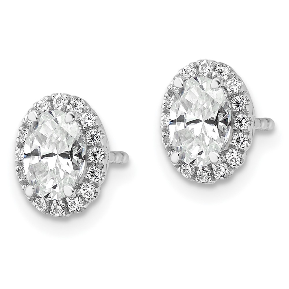 14k White Gold 1 1/5 carat Lab Grown Diamond VS/SI+ G+ Oval Halo Stud Earrings