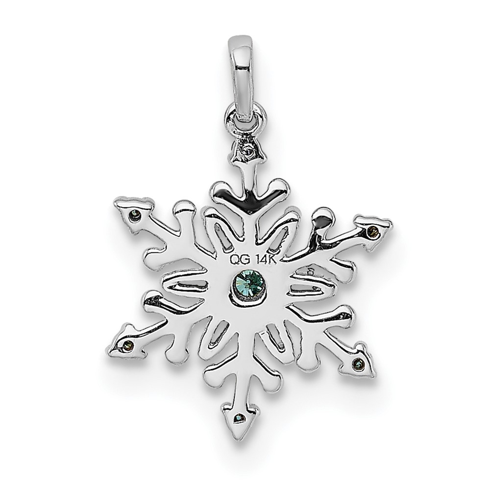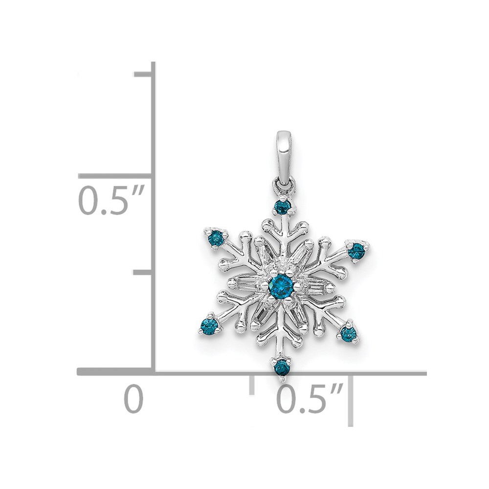 14k White Gold 1/10 carat Blue and White Diamond Snowflake Pendant