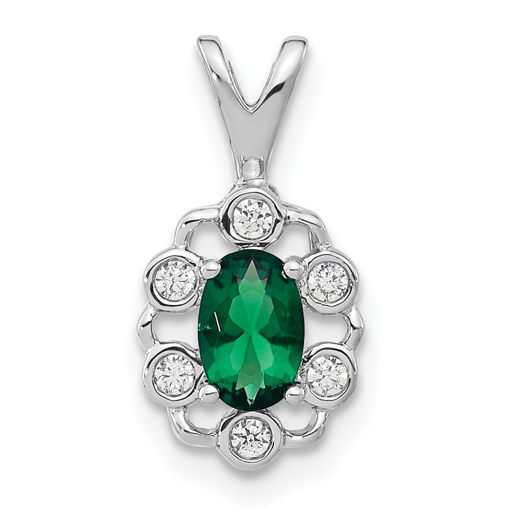 14k White Gold 1/10 carat Lab Grown Diamond VS/SI+ G+ and Lab Created Emerald Pendant