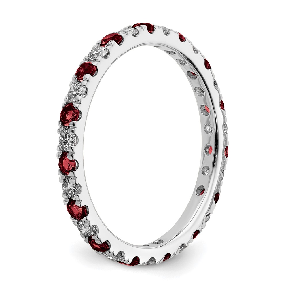 14k White Gold 1/2 carat Lab Grown Diamond VS/SI+ G+ and Lab Created Ruby Size 5.5 Eternity Band