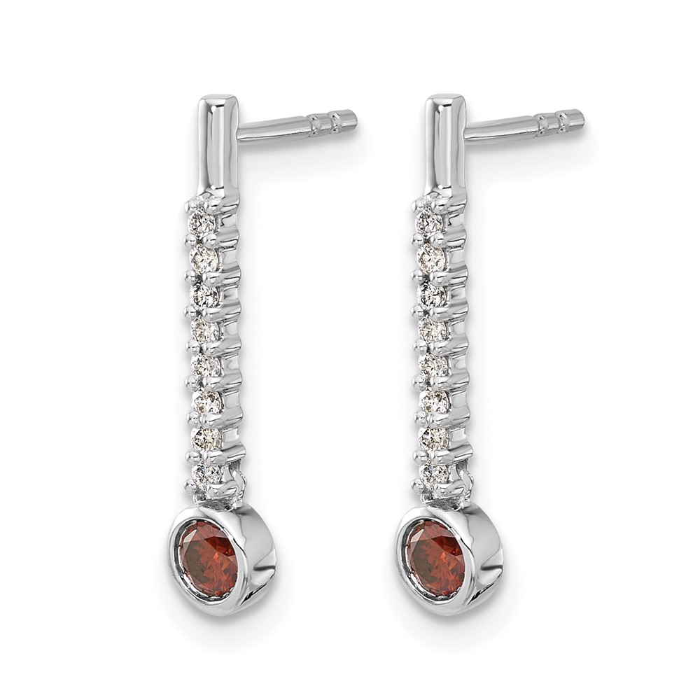 14k White Gold 1/3 carat Red/White Diamond Drop Dangle Post Earrings