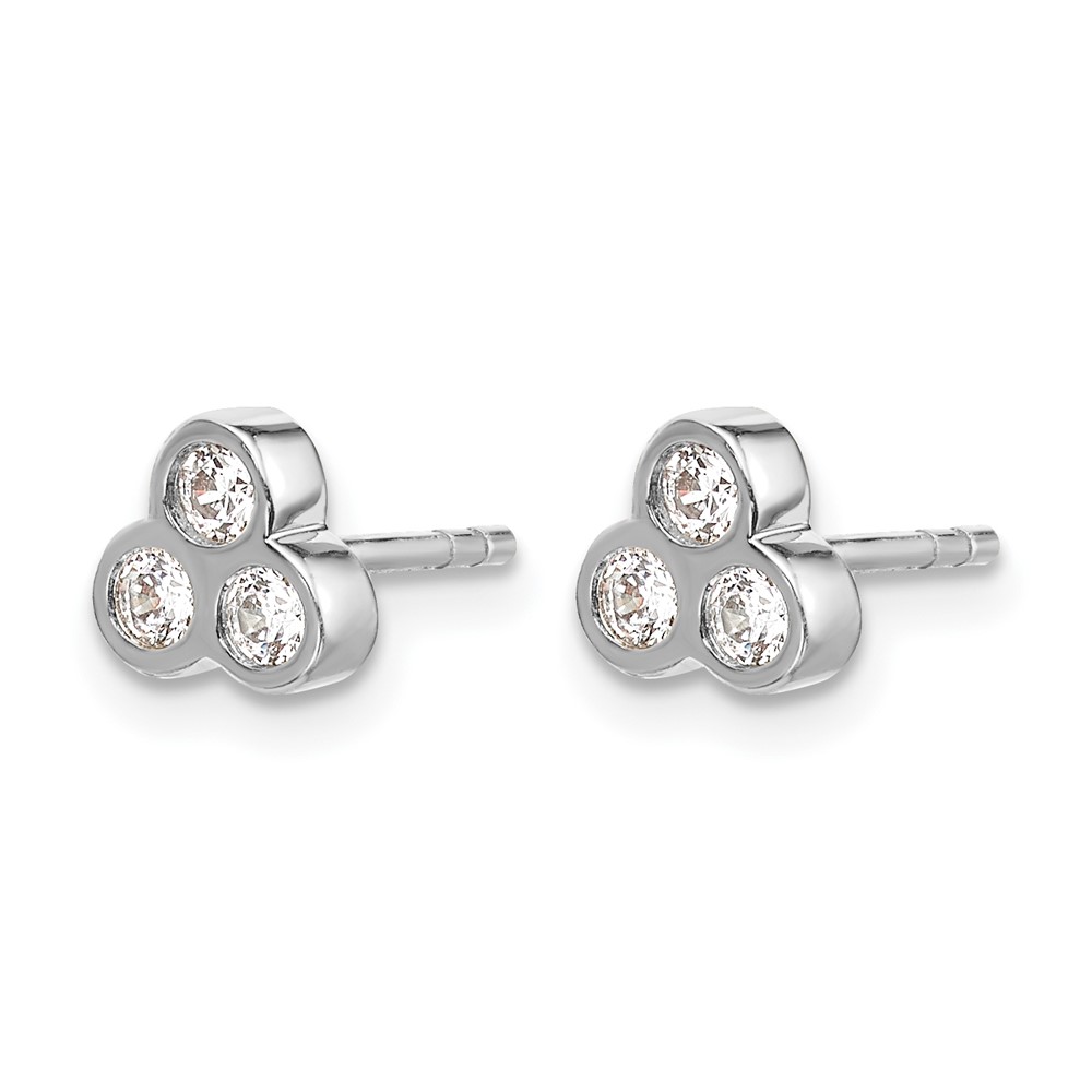 14k White Gold 1/4 carat Diamond 3-stone Bezel Post Earrings