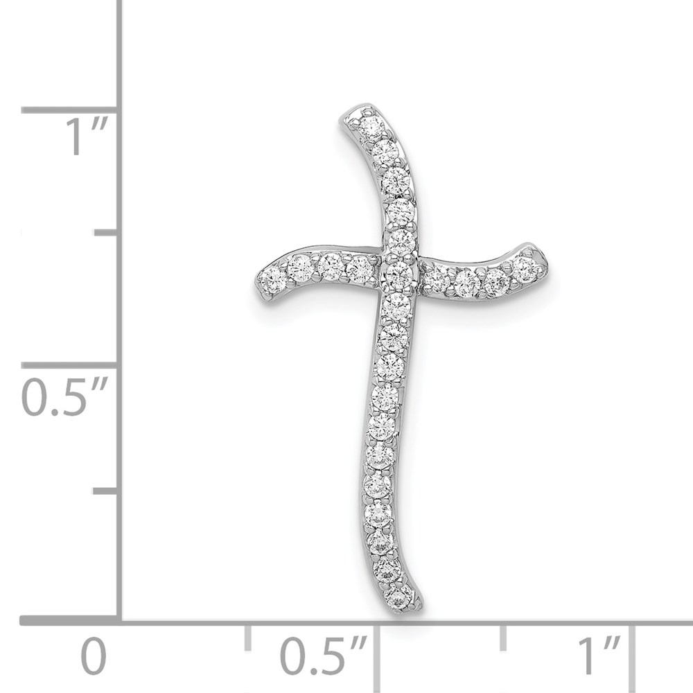 14k White Gold 1/4 carat Diamond Curved Cross Chain Slide