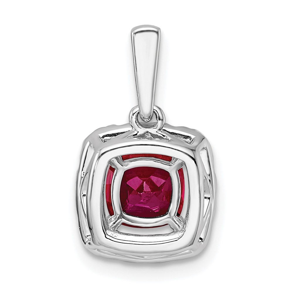 14k White Gold 1/4 carat Lab Grown Diamond VS/SI+ G+ July Birthstone Lab Created Ruby Halo Pendant
