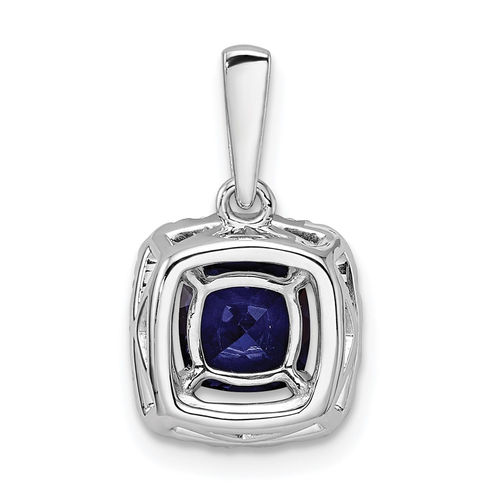 14k White Gold 1/4 carat Lab Grown Diamond VS/SI+ G+ September Birthstone Lab Created Blue Sapphire Halo Pendant