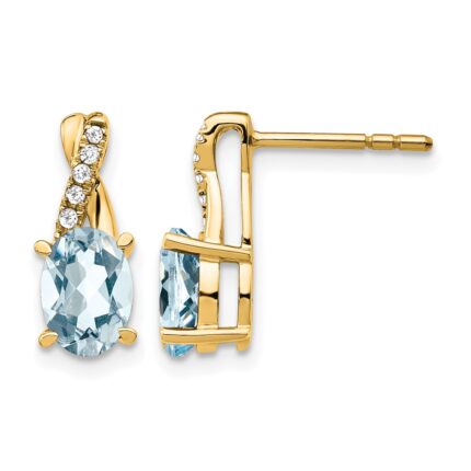 14K 5×3 Oval March/Aquamarine and Diamond Dangle Post Earrings