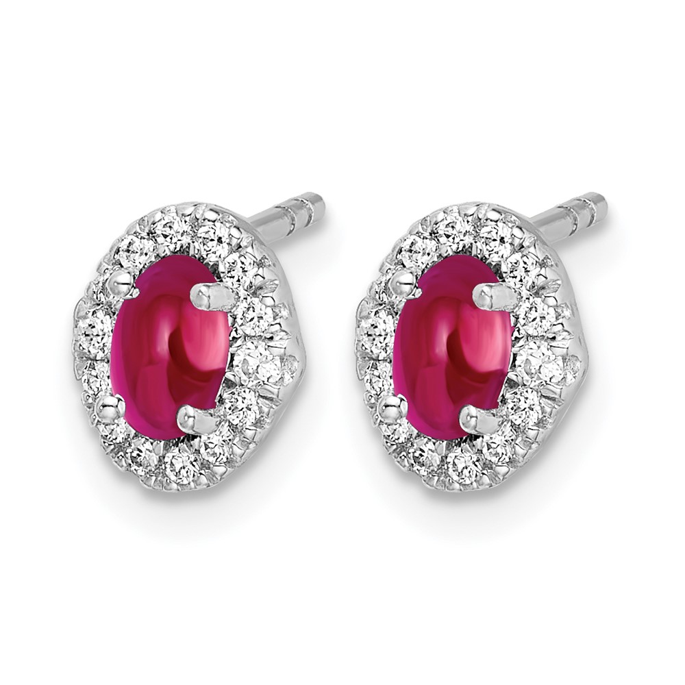 14k White Gold 1/6 carat Lab Grown Diamond VS/SI+ G+ and Oval Created Ruby Complete Halo Post Earrings