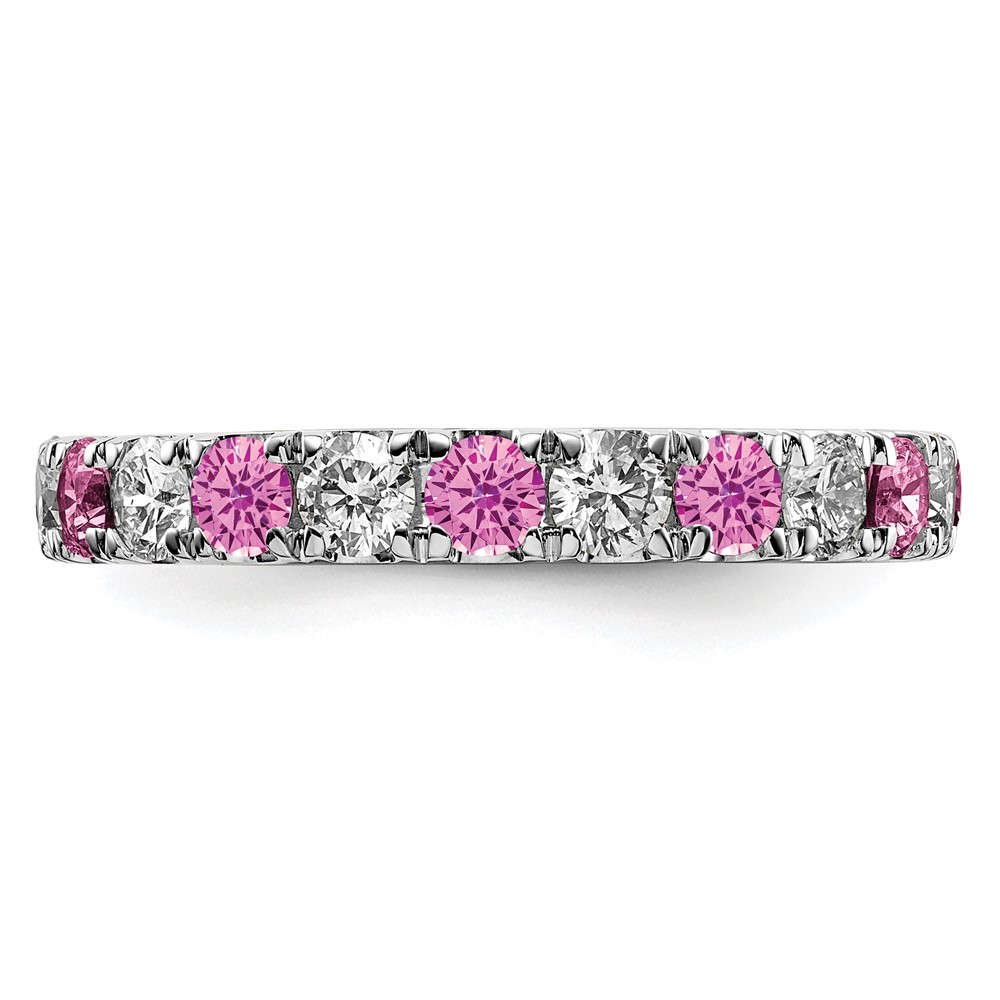 14k White Gold 1 carat Lab Grown Diamond VS/SI+ G+ and Lab Created Pink Sapphire Size 5.5 Eternity Band