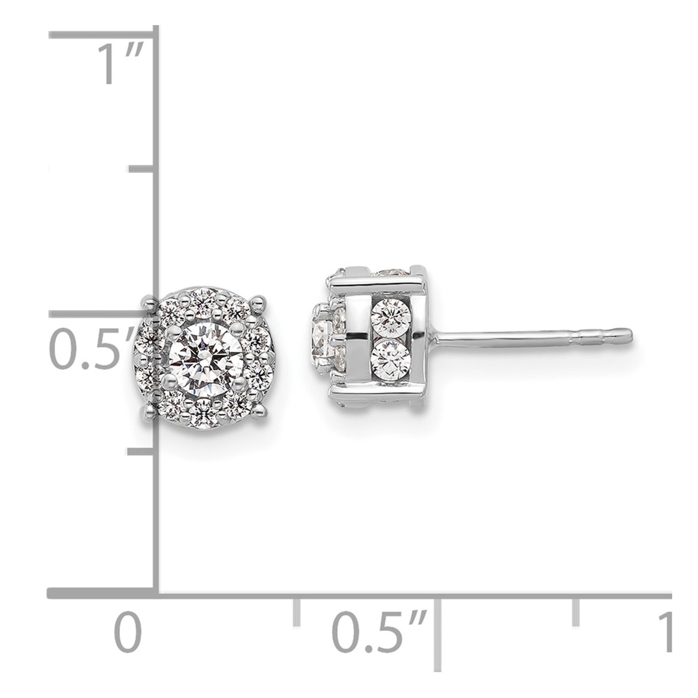 14k White Gold 1 carat Lab Grown Diamond VS/SI+ G+ Complete Round Fashion Halo Post Earrings