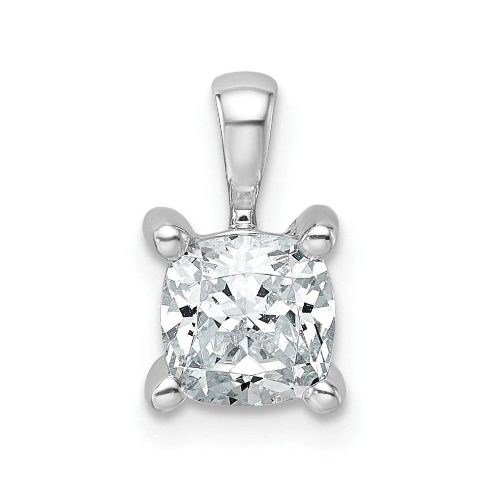 14k White Gold 1 carat Lab Grown Diamond VS/SI+ G+ Cushion Complete Four Prong Pendant