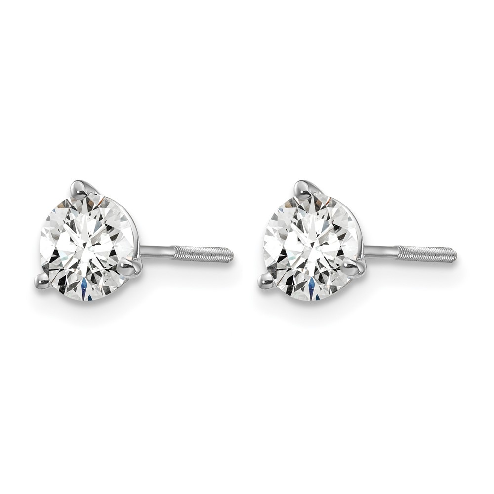 14k White Gold 1 carat Lab Grown Diamond VS/SI+ G+ Round Complete Three Prong Screwback Stud Earrings