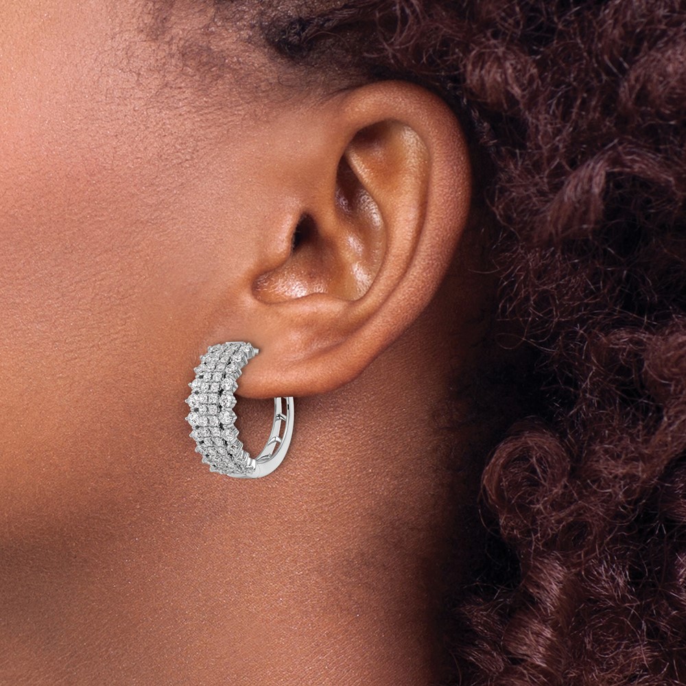 14k White Gold 2-row Baguette Diamond Omega Back Hoop Earrings