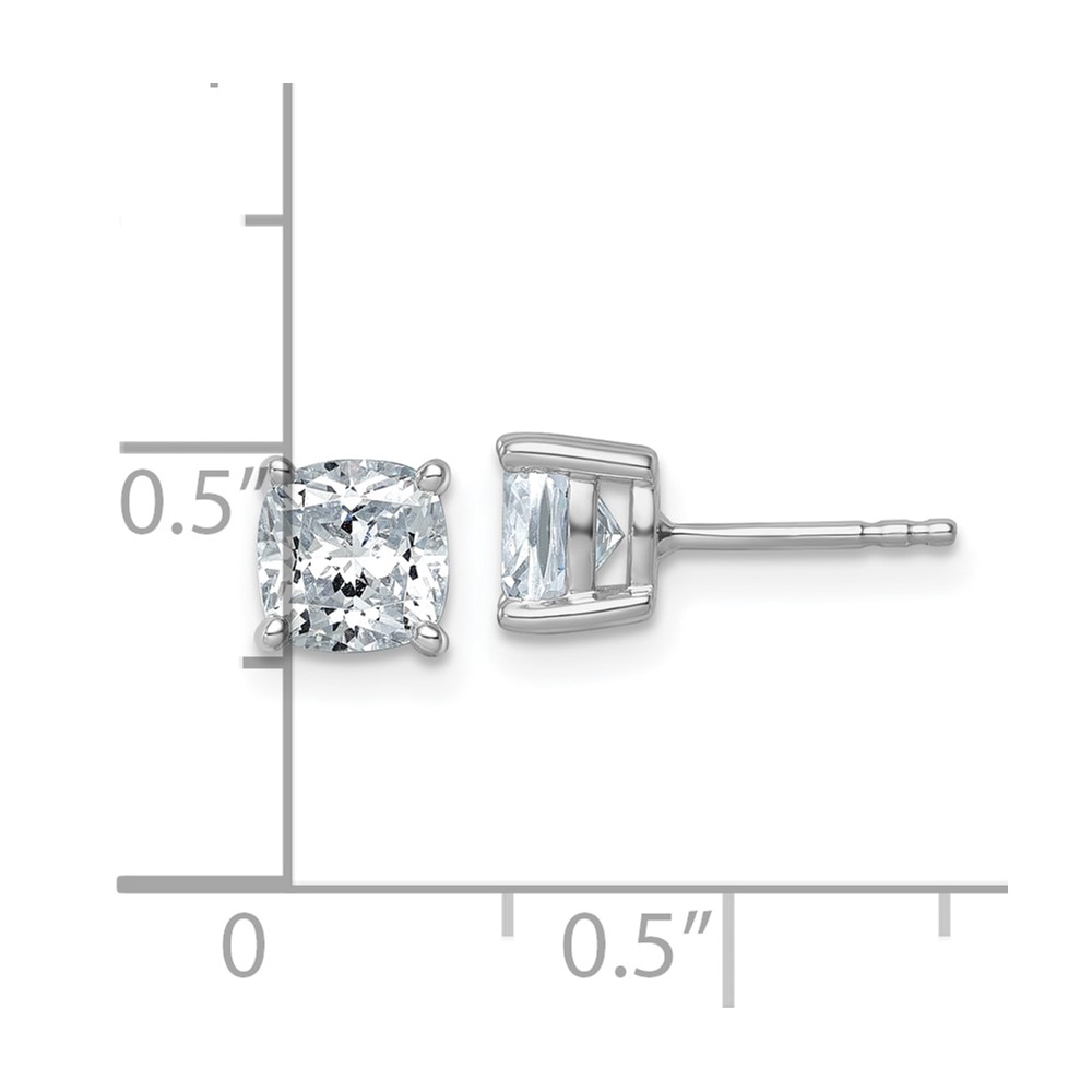 14k White Gold 2 carat Lab Grown Diamond VS+ F+ Cushion Complete Four Prong Stud Earrings