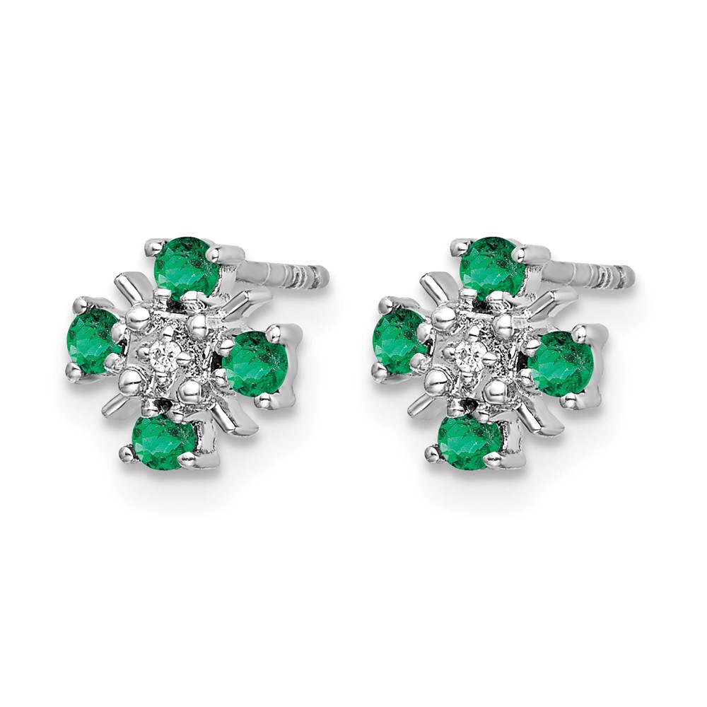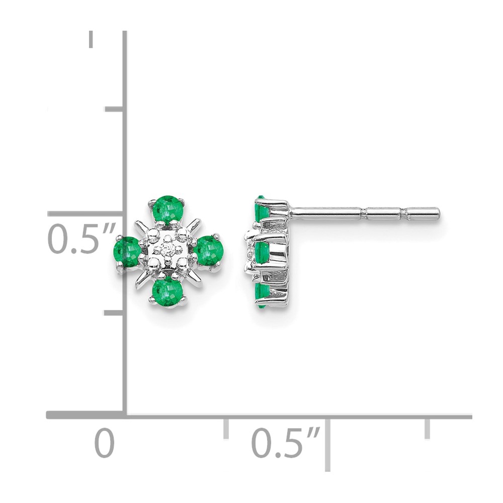 14k White Gold 2mm Round Emerald and Diamond Post Earrings