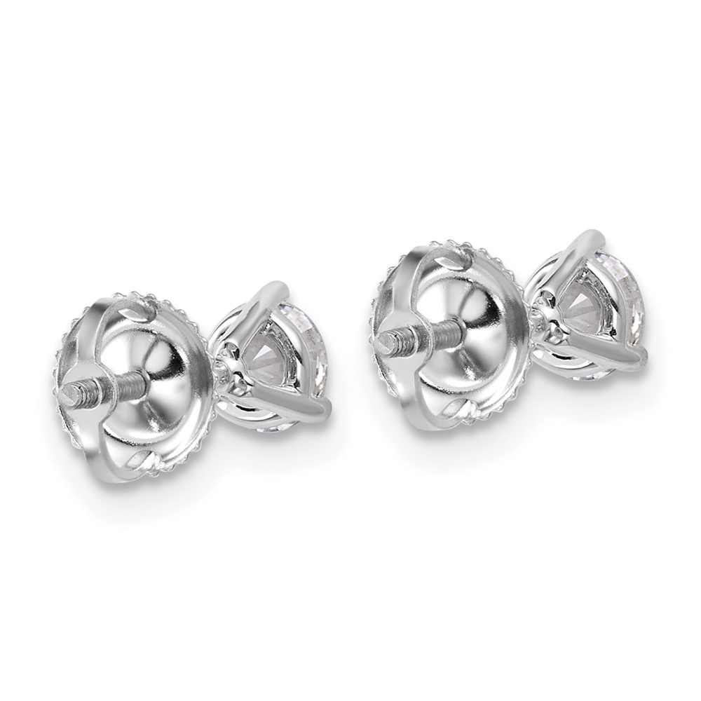 14k White Gold 3/4 carat Lab Grown Diamond VS+ F+ Round Complete Three Prong Screwback Stud Earrings