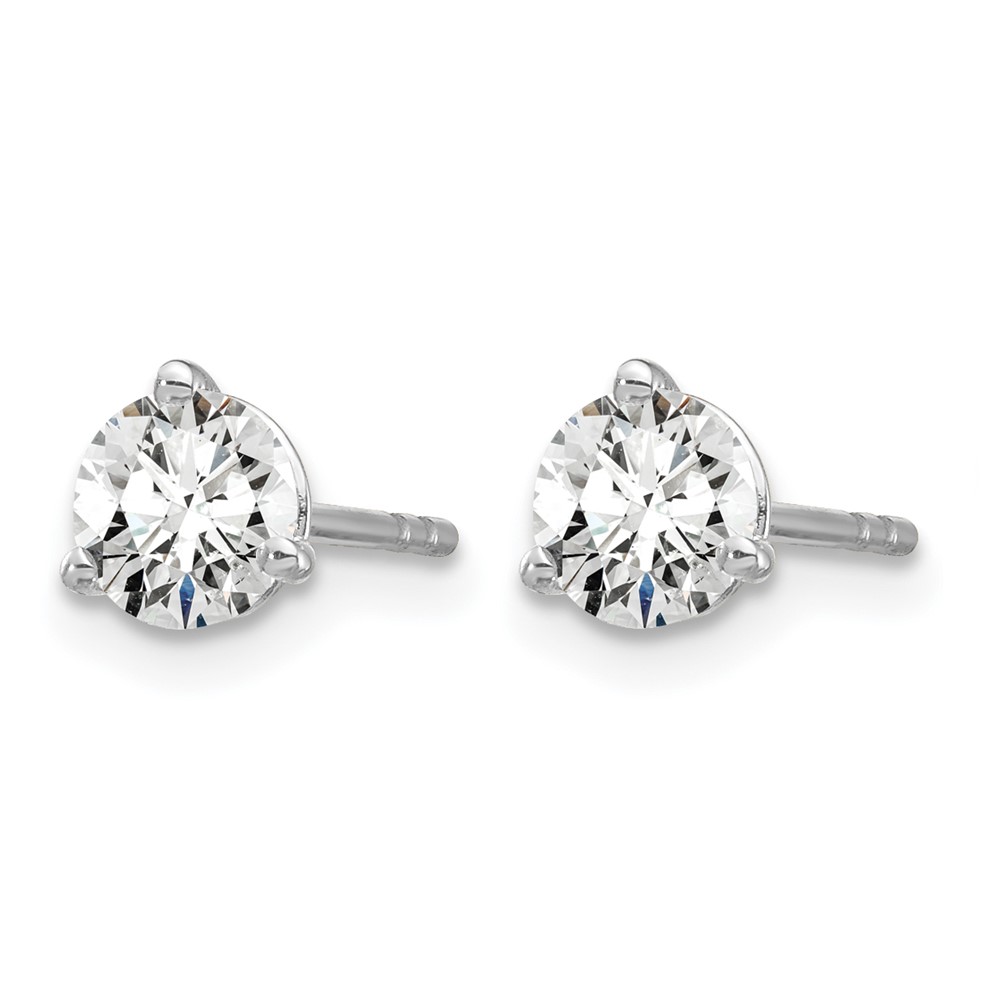 14k White Gold 3/4 carat Lab Grown Diamond VS+ F+ Round Complete Three Prong Stud Earrings