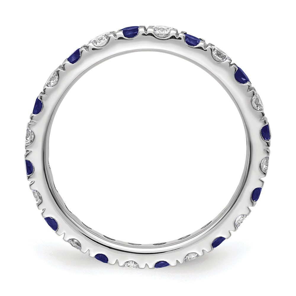 14k White Gold 3/4 carat Lab Grown Diamond VS/SI+ G+ and Lab Created Blue Sapphire Size 6.5 Eternity Band