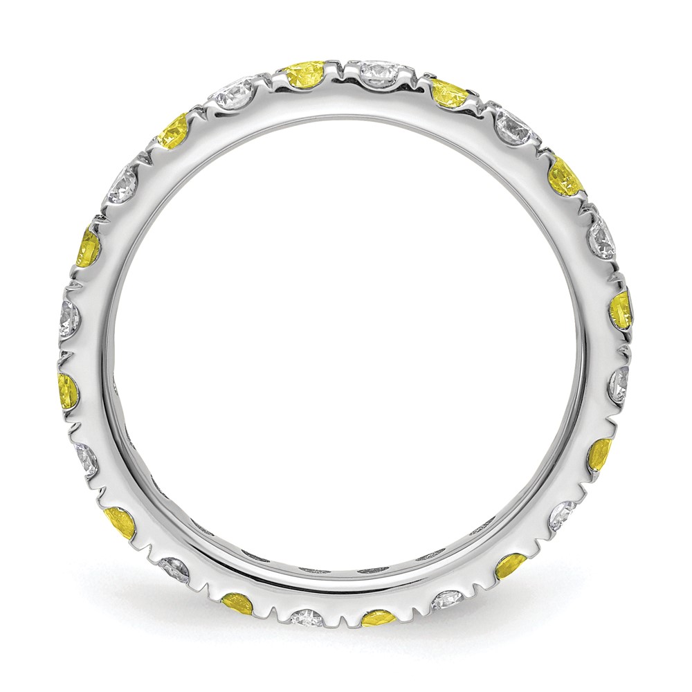 14k White Gold 3/4 carat Lab Grown Diamond VS/SI+ G+ and Lab Created Yellow Sapphire Size 6 Eternity Band