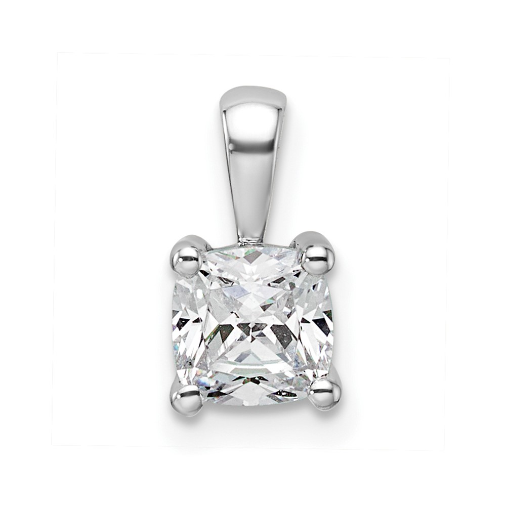 14k White Gold 3/4 carat Lab Grown Diamond VS/SI+ G+ Cushion Complete Four Prong Pendant